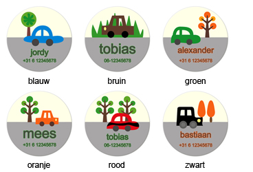 Altijd uw naam en/of telefoonnummer zichtbaar met onze SOS buttons! De button kan worden gemaakt met naam en/of uw telefoonnummer. Ze zijn verkrijgbaar in 2 maten, namelijk 3,8 cm en 5 cm. De buttons zijn verkrijgbaar in 6 hippe en trendy kleuren en worden verkocht per set van 4 stuks. De maximale lengte van de naam is 15 tekens. Hoe langer de naam, hoe kleiner het lettertype.