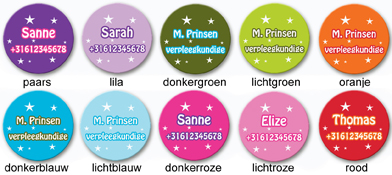 Altijd uw naam en/of telefoonnummer zichtbaar met onze buttons! De button kan worden gemaakt met naam en/of uw telefoonnummer. Ze zijn verkrijgbaar in 2 maten, namelijk 3,8 cm en 5 cm. De buttons zijn verkrijgbaar in 10 hippe en trendy kleuren en worden verkocht per set van 4 stuks. De maximale lengte van de naam is 15 tekens. Hoe langer de naam, hoe kleiner het lettertype.
