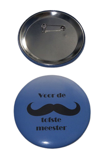 Deze button is leuk om te geven bij het afscheid van de meester. Hij is verkrijgbaar in 1 maat namelijk 7,5 cm.