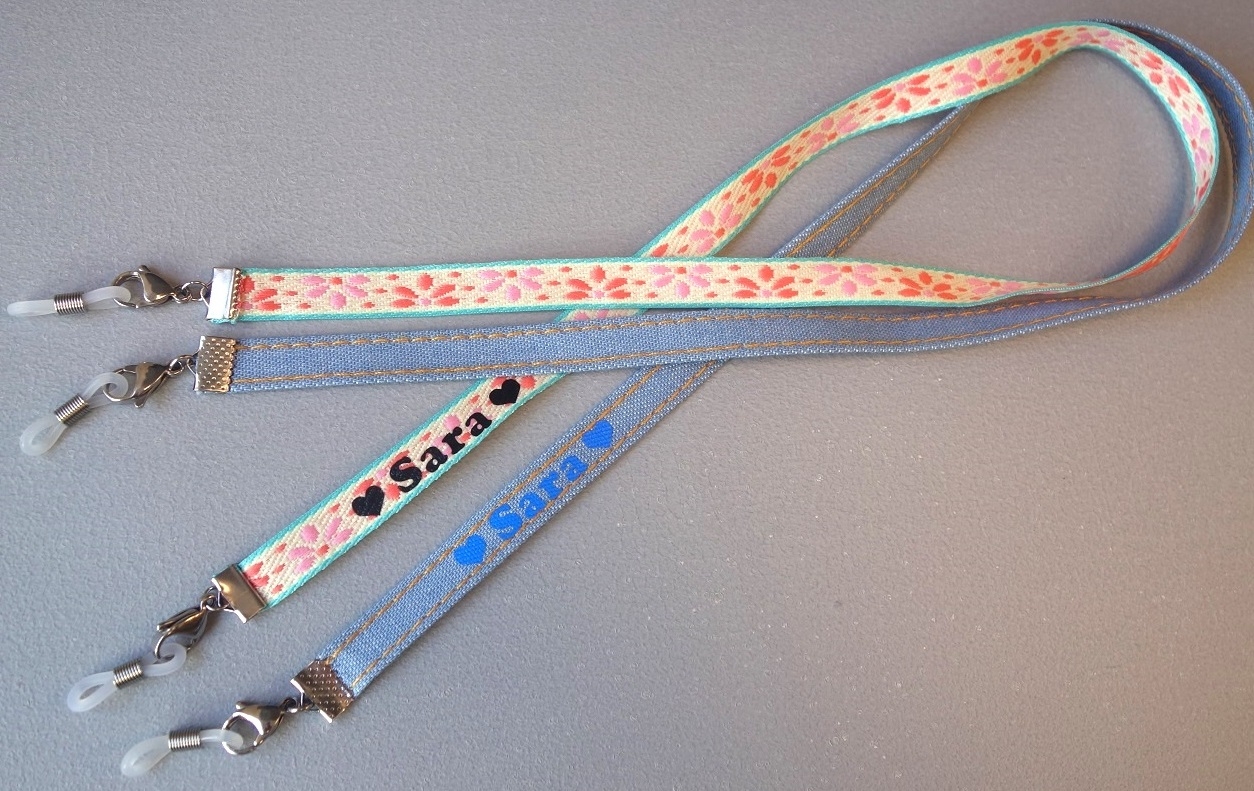 Brillenkoord bedrukt met naam. U kunt kiezen uit twee lengte maten 50cm of 70 cm lang inclusief slotjes. Besteld u dit brillenkoord voor een kind? kies dan voor de korte lengte. Wilt u hem nog korter, vermeld dan de maat in het opmerkingenveld. Breedte stof 1cm, alle onderdelen zijn gemaakt van roestvaststaal.