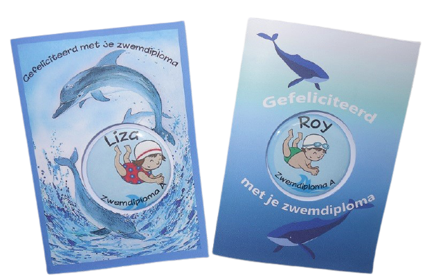 Button zwemdiploma a b of c  in kaart online bestellen, doet u hier!