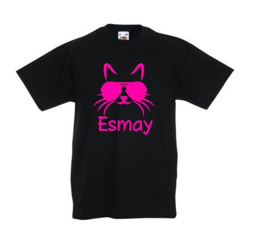 t-shirt bedrukt met naam en kat voor kinderen