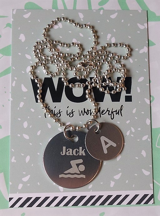 Levertijd ketting met gegraveerde penning en bedel A, B of C