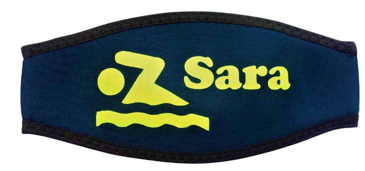 Maskerband neopreen cover voor duikbril bedrukt met naam en zwemmer