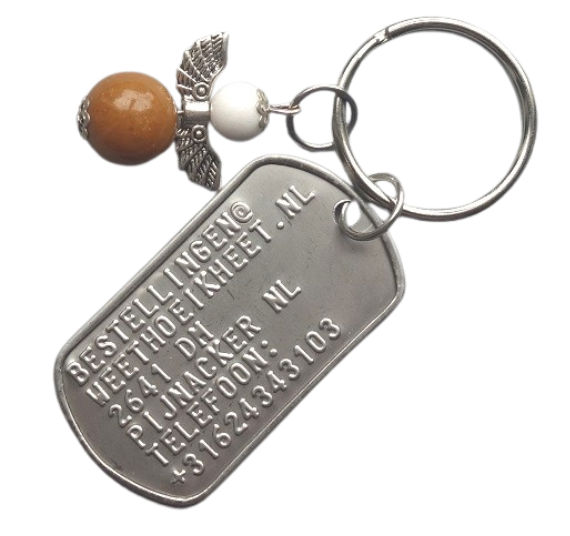 De prijs voor de sleutelhanger rvs met identiteitsplaatje is inclusief engel gemaakt van edelsteen agaat.