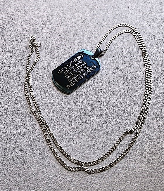 De prijs voor het identiteitsplaatje gegraveerd is inclusief RVS ketting naar keuze.
