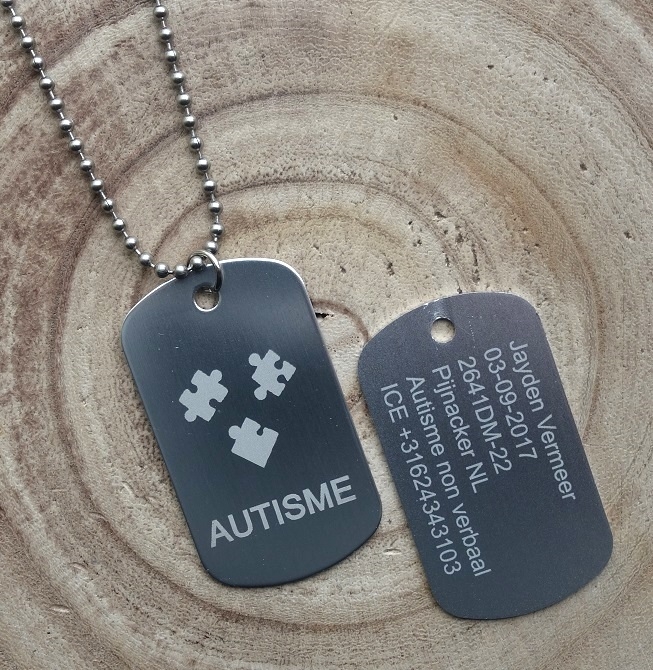 Dogtag Autisme 2-zijde gravure aluminium hoogglans
