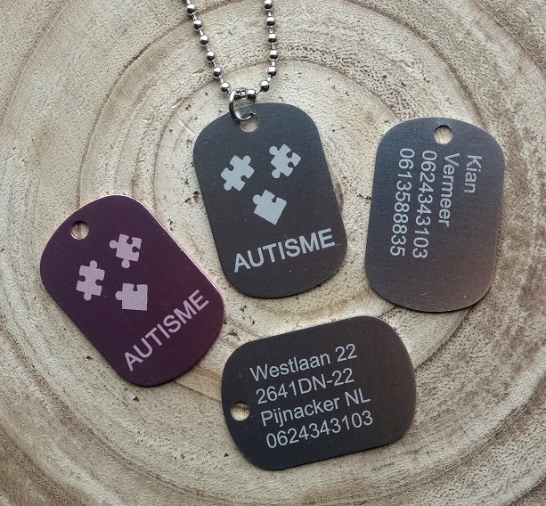Levertijd identiteitsplaatje Autisme puzzelstukjes mini aluminium gegraveerd