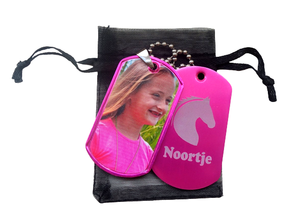 Dogtag met foto en gegraveerde afbeelding met naam