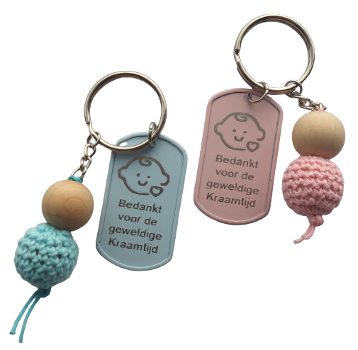 Sleutelhanger bedankje kraamhulp gegraveerd