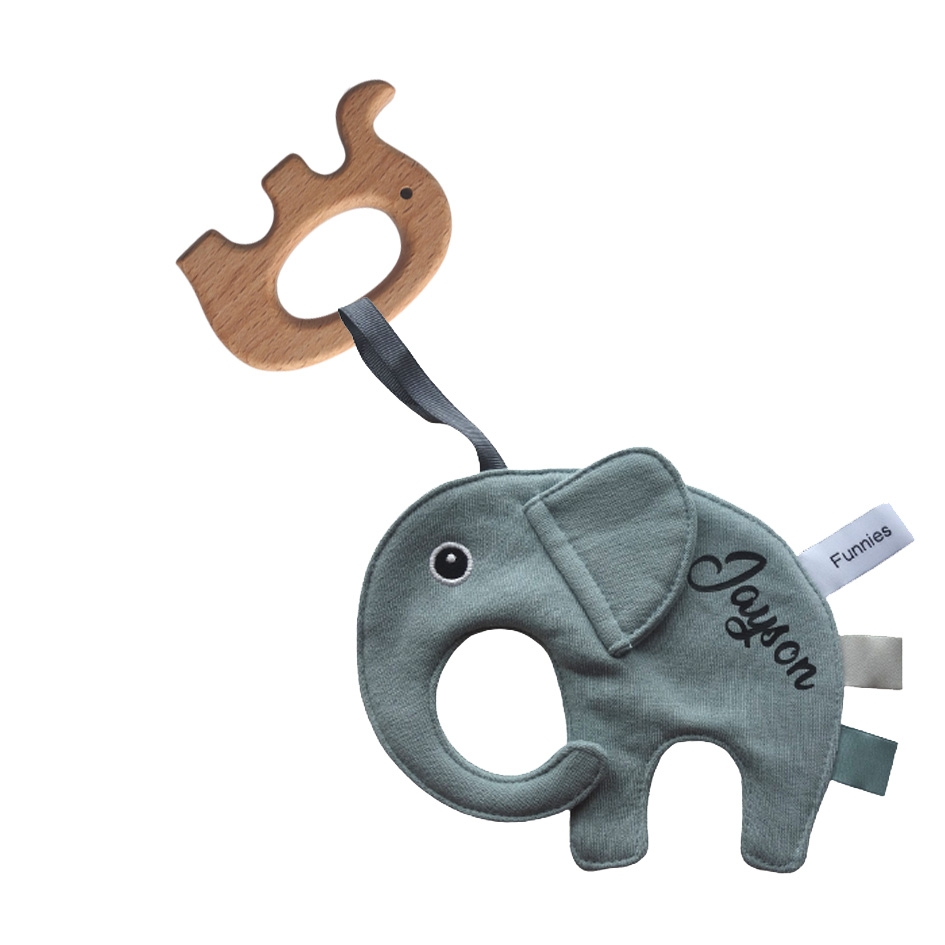 Tutpop olifant met naam en bijtring hout