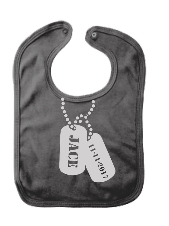 Slab bedrukt met stoere dogtags. Hierop kunt u u eigen tekst laten bedrukken. Voorbeeldmodel is met naam en leuke tekst. Wat bijvoorbeeld ook leuk is: Naam en geboortedatum, voornaam en achternaam of leuke tekst. Maak het niet te lang per tag! dit wordt onleesbaar.