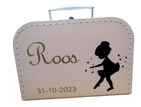 Geboortekoffertje met naam en geboortedatum diverse kleuren