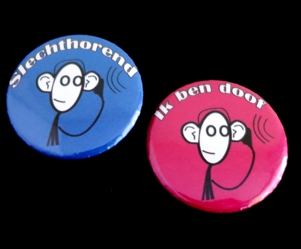 Button doof of slechthorend aapje set kleine buttons 2 stuks
