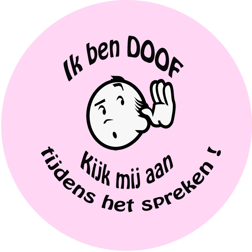 Tekst Slechthorend of ik ben doof met eigen tekst onderin de button. Kleuren: pastel roze, pastel blauw, pastel groen en pastel geel, kijk bij optie welke u wenst.