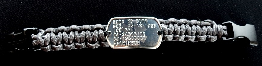 Paracord dogtag armband medisch RVS geponst en gegraveerd