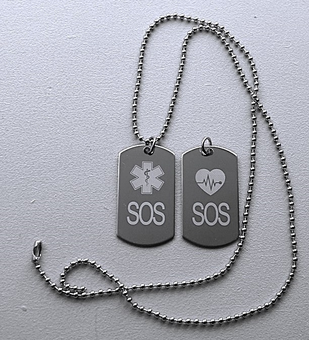 De prijs € 18,95 voor de medische dogtag is inclusief roestvast stalen ketting 70 cm. Wilt u liever een rvs balletjesketting geen probleem bij optie keuze ketting kunt u kiezen.
