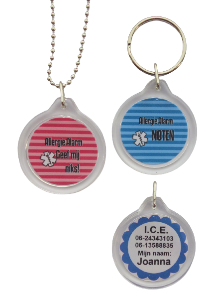 Bescherm uw kind, uzelf of een geliefd persoon met deze handige ID lichtgewicht ketting. Deze hebben ook als sleutelhanger te koop. Kinderen kunnen deze hanger niet openen. Hanger is spatwaterdicht, echter raden wij niet aan om ermee te gaan zwemmen.