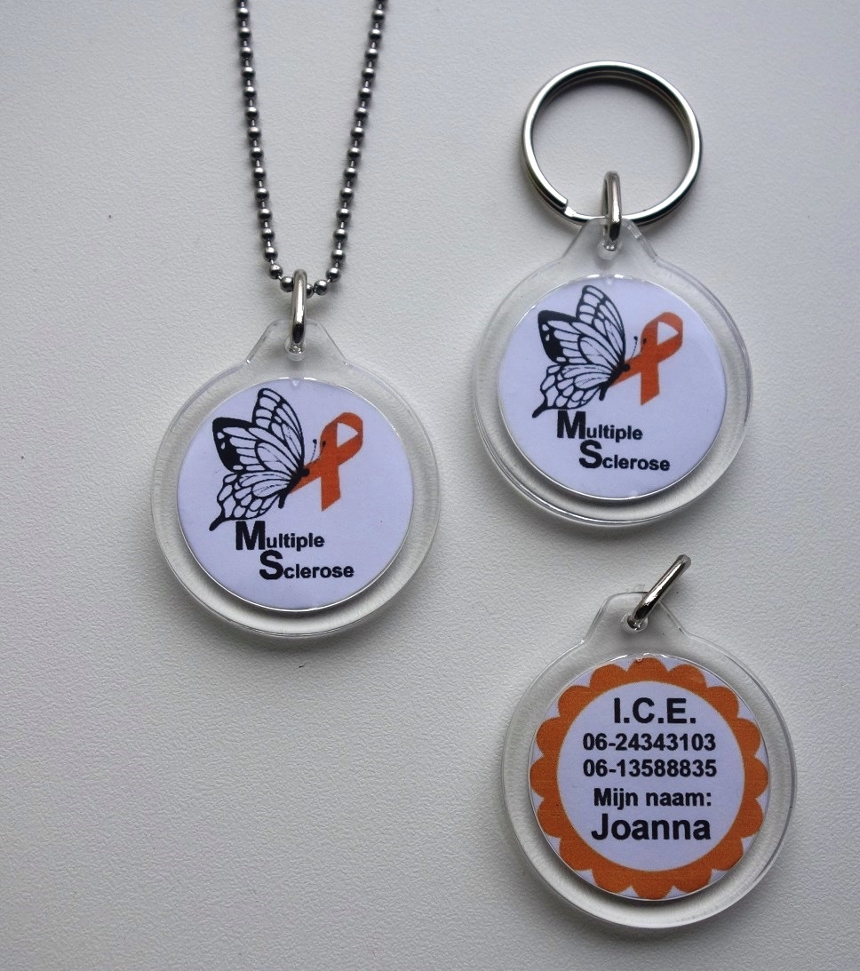 Bescherm uzelf met deze handige ID lichtgewicht ketting. Deze hebben ook als sleutelhanger te koop. Hanger is spatwaterdicht, wij raden echter niet aan om ermee te gaan zwemmen. Wij raden vanaf 12 jaar een RVS ketting aan, deze blijft altijd mooi ook bij transpireren.