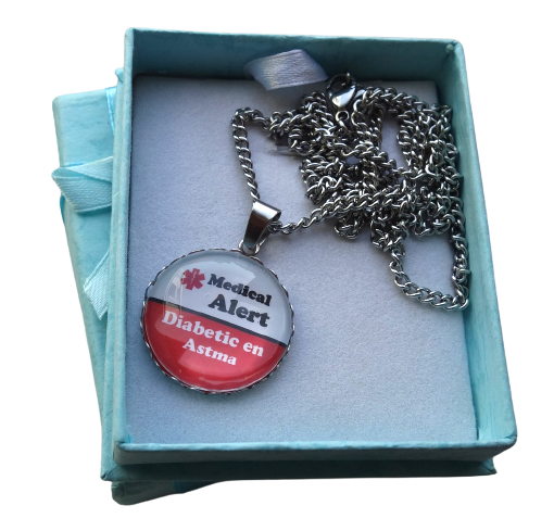 Mooie RVS hanger en ketting Medical Alert met eigen tekst.