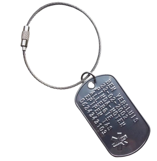 Sleutelhanger dogtag met medische rvs bedel bestellen, doet u hier!