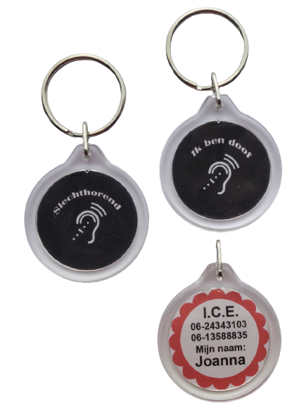 Medische sleutelhanger doof of slechthorend oor eigen tekst 2-zijde
