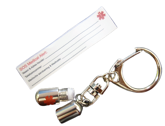 Medische SOS pillenkokertje RVS gratis medisch kaartje