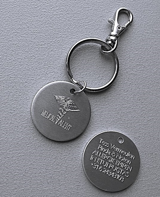 De prijs voor de medische sleutelhanger gegraveerd € 8,95 is inclusief sleutelring en clipje.