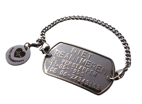 Niet reanimeren armband RVS op uw maat gemaakt.