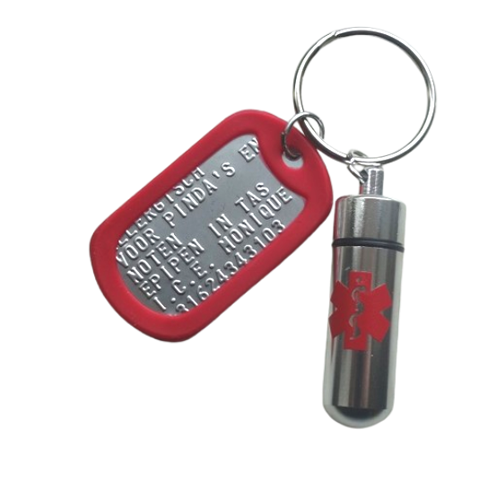 Medische sleutelhanger kaartje in waterdicht hoesje