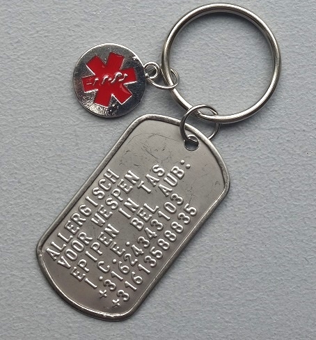Sleutelhanger dogtag met medische rvs bedel bestellen, doet u hier!