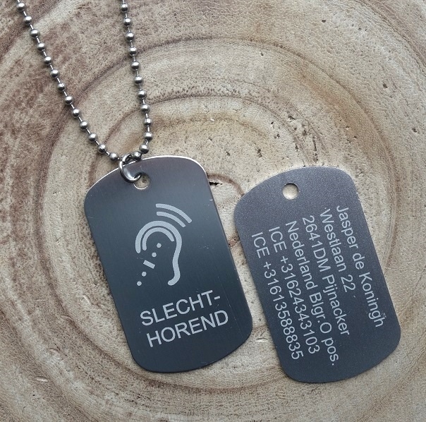 Levertijd dogtag doof of slechthorend oor 2-zijde gravure