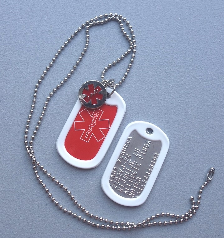 Dogtag met medische sticker en bedel