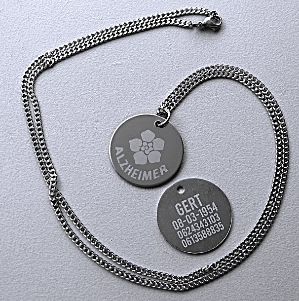Ketting alzheimer of dementie penning RVS 2-zijde gravure RVS ketting