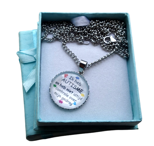 Door glasbol dome is deze ketting niet geschikt voor kleine kinderen. Wij verkopen in onze groep medische kettingen ook autisme kettingen van kunststof gemaakt, ook geschikt voor de allerkleinste.