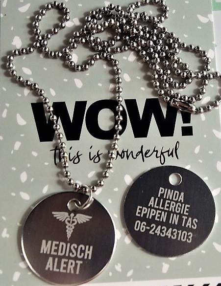 Medische penning aluminium 2-zijde gravure incl. nikkelvrije ketting