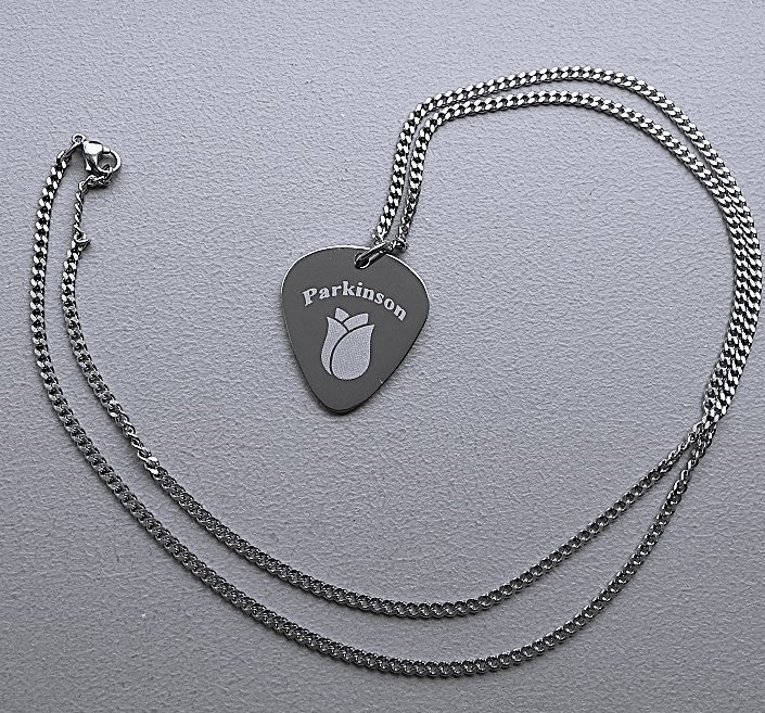 Levertijd  Parkinson penning guitar pick RVS gegraveerd