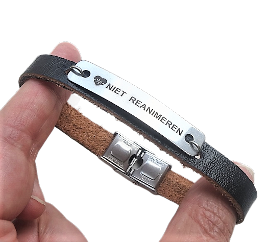 Niet reanimeren armband rvs en leer op maat gemaakt