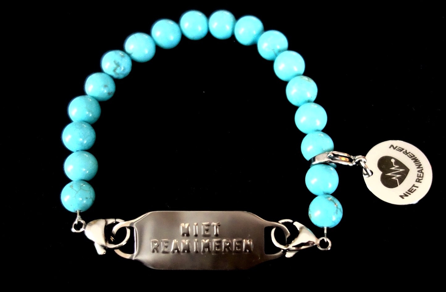 Niet reanimeren armband edelsteen met rvs plaat en rvs bedel niet reanimeren