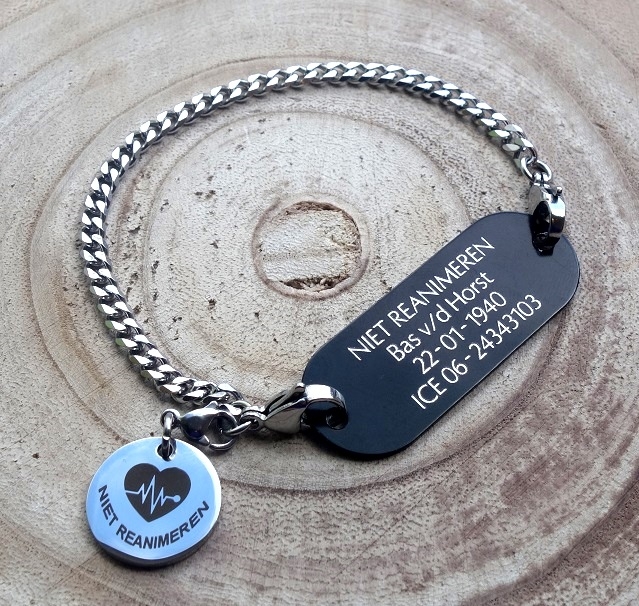 Niet reanimeren armband gegraveerd 1 of 2 zijde gravure