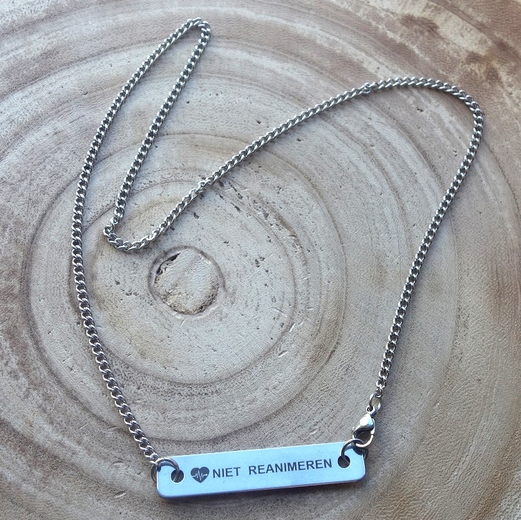 Niet reanimeren bar ketting RVS op maat gemaakt