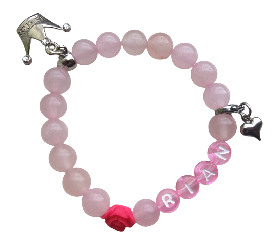 De armband liefde is handgemaakt met rozenkwarts edelstenen op elastiek. Rozenkwarts is de beschermer van de kinderziel en behoedt voor puberteitsexcessen. Het geeft fantasie en zelfrespect. De steen helpt tegen jaloezie en vermindert buikkrampen bij baby's. Rozenkwarts wordt ook gezien als de steen van de liefde. De steen opent het hart om liefde te ontvangen en liefde te geven.