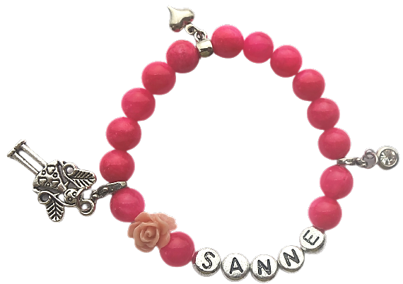 De armband prinses is handgemaakt met jade edelsteen fuchsia roze op elastiek. Jade sterkt de nieren, de blaas en ogen. Jade bevordert de spijsvertering en helpt tegen ontstekingen. Het is de steen van wijsheid, rechtvaardigheid, barmhartigheid, bescheidenheid en moed. De steen schenkt geluk en tevredenheid. Het neemt angst en zenuwen weg en bevordert de communicatieve eigenschappen. En de jade steen helpt ook bij bedplassen.