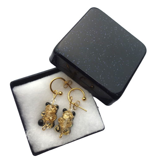 Overige materialen swarovski kristal en kunststof lichtgewicht beertje in effen of glitterbeer. In een paar leuke kleuren te verkrijgen, kijk bij optie voor kleurkeuze. Deze oorbellen zullen ze niet snel verliezen. Maat beertje 17mm.