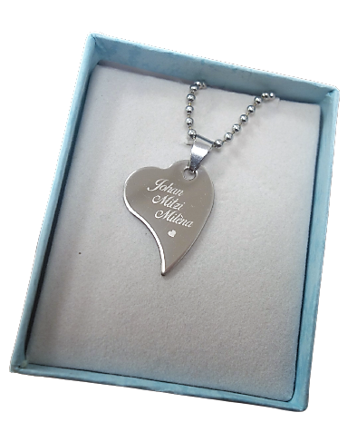 De prijs voor de naamhanger hart gegraveerd met namen is inclusief RVS balletjes ketting.