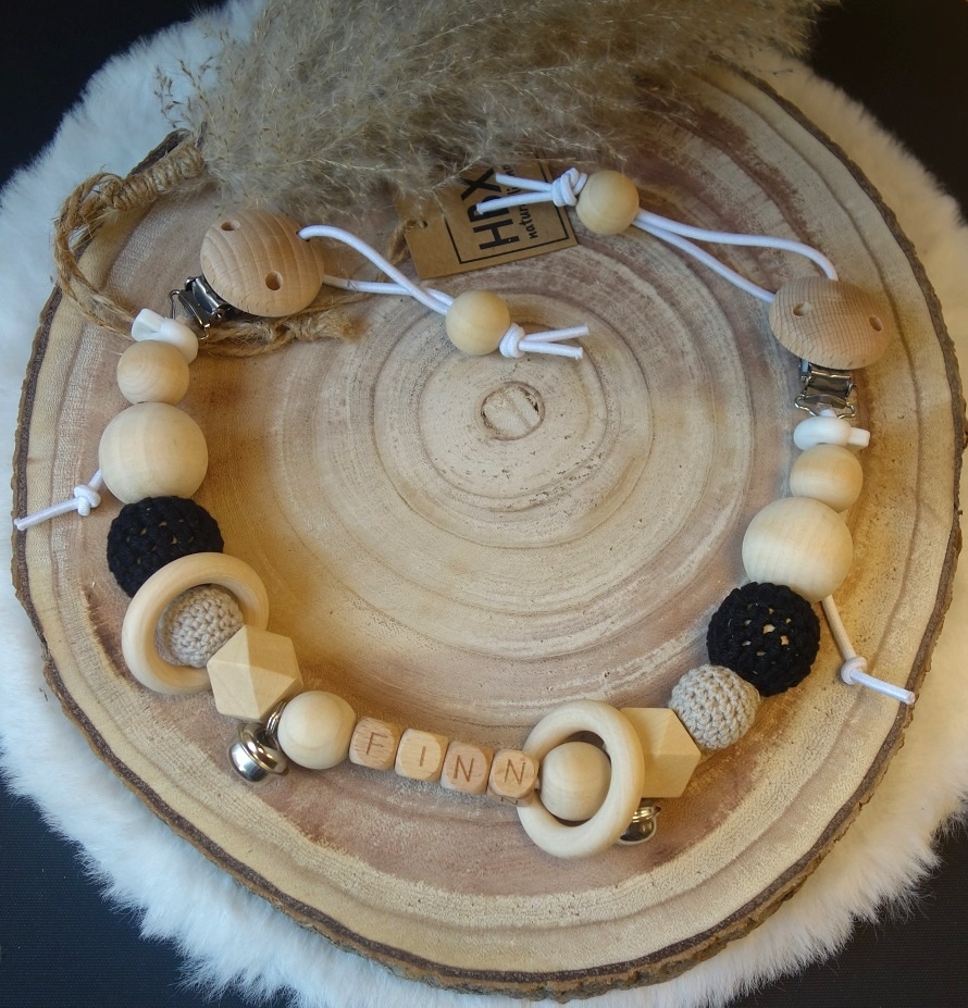 Wij produceren deze wagenspanner/maxi cosi spanner zelf, met de hand. De kralen en ringen zijn gemaakt van 100% beukenhout vrij van schadelijke stoffen.