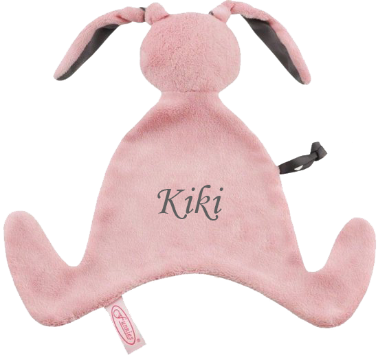 Leuk als cadeau voor uw eigen zoon of dochter of als cadeau voor een ander. Speendoek konijn JIP bedrukt met naam, speentje kan er aan gevestigd worden. Verkrijgbaar in twee uitvoeringen roze of blauw.