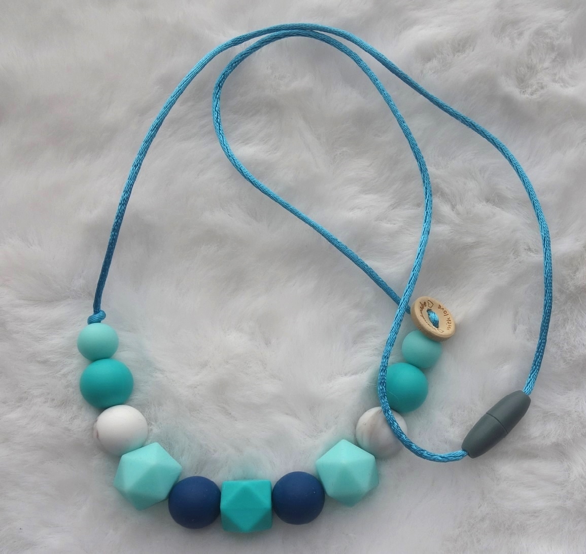 Let op! Alleen te gebruiken als een volwassenen de ketting draagt. Alleen dan kan de baby er veilig mee spelen. Altijd onder toezicht gebruiken.