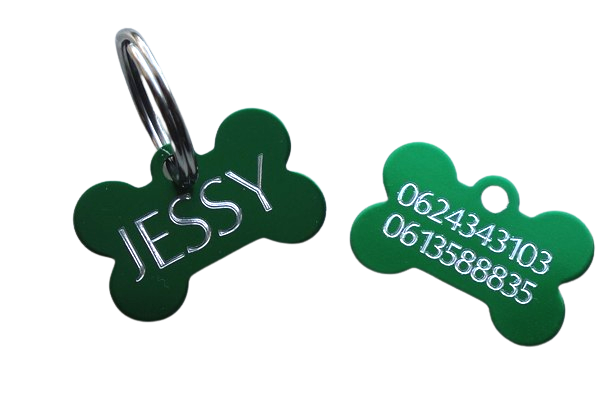 Het formaat is kleiner dan een gewoon identiteitsplaatje en past makkelijk aan de halsband van uw dier, bij vermissing is uw huisdier snel bij u terug.