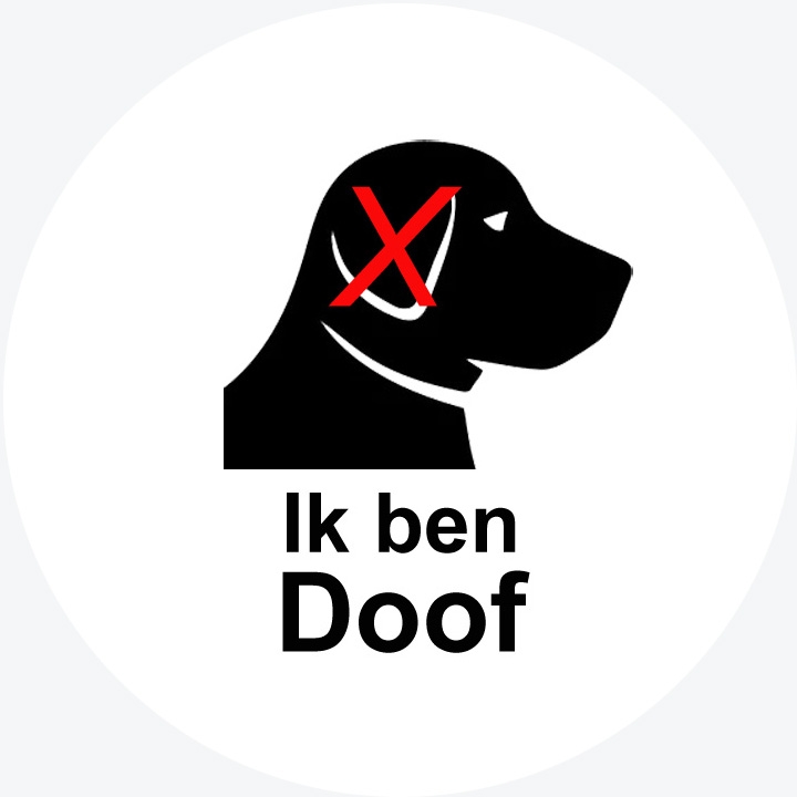 Super leuk en een gegarandeerd succes is deze button hond doof. De button wordt standaard geleverd in 5 cm. Je kunt ze op het tuig van je hond spelden, of op je eigen jas of tas.